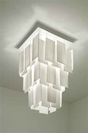 | FIBRELAMP The glass fibre fabric gives an almost holographical effect and filters the light diffusely. The large lamp-shades are shielded at the bottom, with an open focus. They are available in different models and diameters: Ø 35 cm, height 70 cm / Ø 50 cm, height 50 cm, Ø 80 cm, height 35 cm. In metallic and carbon black, at request also in blue, yellow or red. Ø 35 cm, height 70 cm, E.495 Ø 50 cm, height 50 cm, e.645 Ø 80 cm, height 35 cm, E.795 |