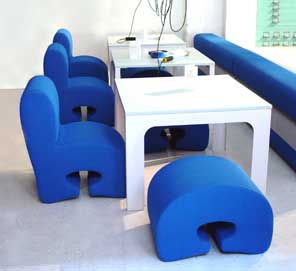 Massief schuim dat door de vorm 'vering' in de zitting heeft.
